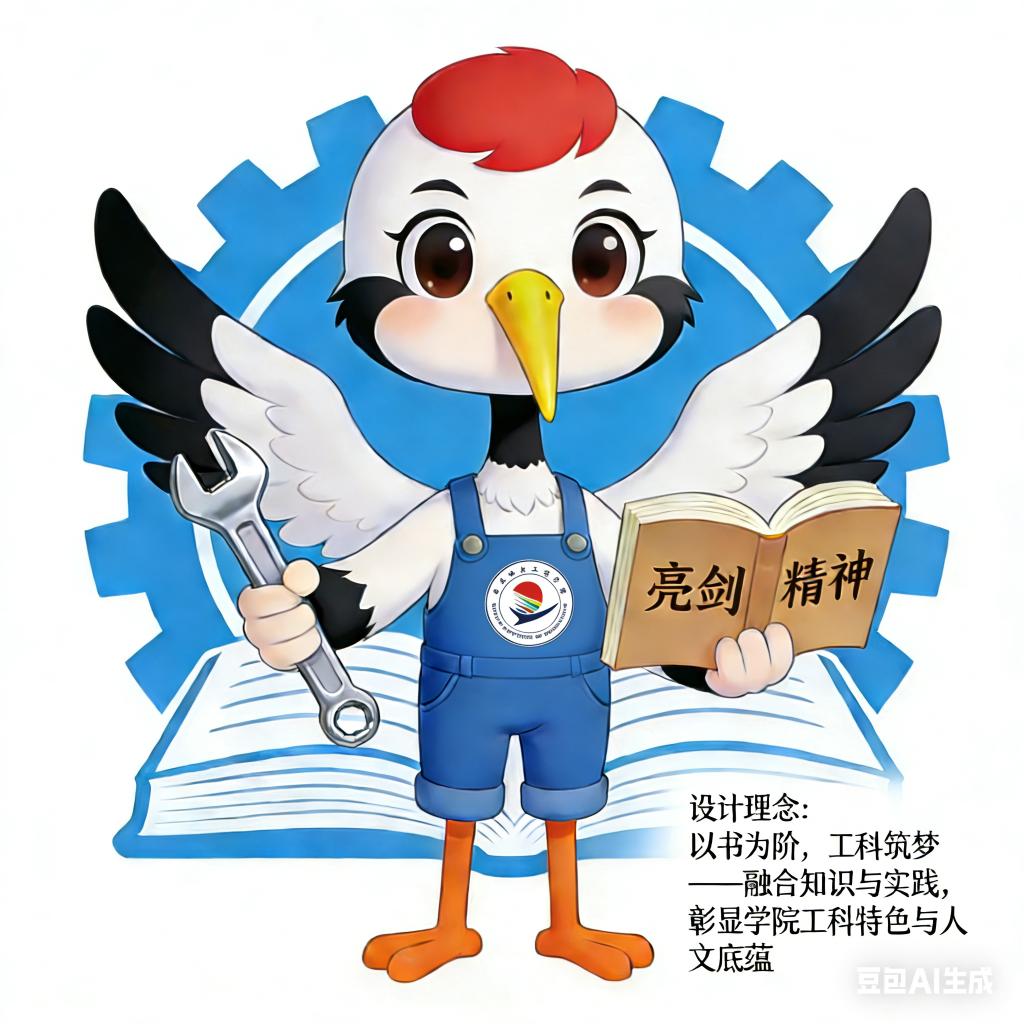 为让吉祥物设计兼具文化底蕴与学校特色,罗云志以《设计心理学》中所讲述的设计理念为指引,深度挖掘伟德国际1946的地域文化内涵,最终设计出校园吉祥物“齐鹤匠”。该吉祥物以鹤城标志性元素丹顶鹤为原型,搭配工装、扳手与书本等视觉符号,其中书本印刻“亮剑精神”字样呼应学校精神,将地域文化特质、专业属性与学校精神深度融合。