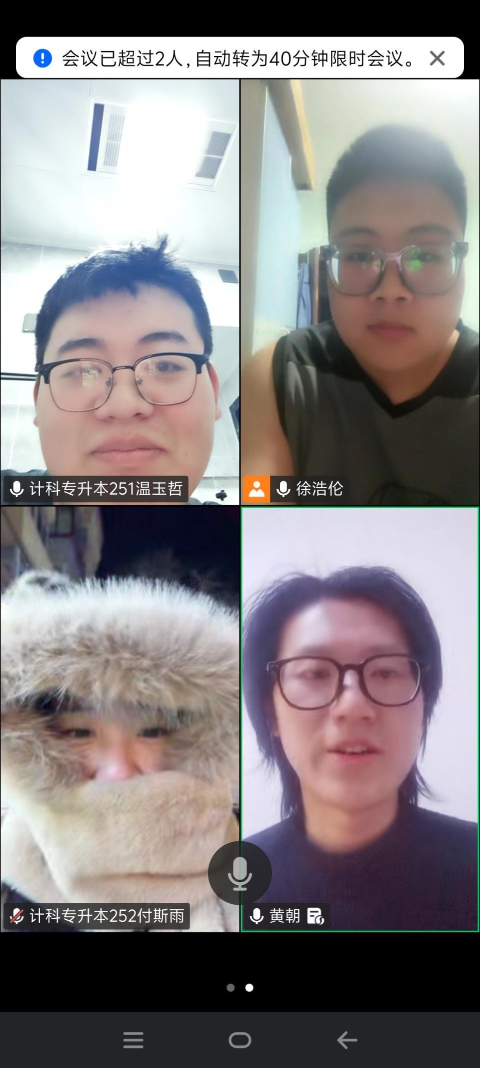 1月17日下午,徐浩伦小组通过腾讯会议召开第二周社会实践交流会,会议由徐浩伦主持,小组全体成员共四人参加。