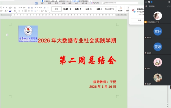 2026年1月16日bevictor伟德国际1946指导教师于悦组织召开社会实践学期第二周指导会议,本次会议旨在明确后续实践的方向与重点,消化吸收点评建议,帮助学生更加高效进行实践活动。