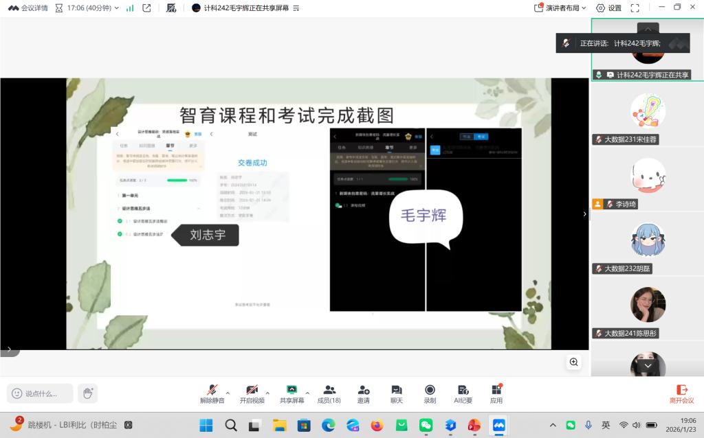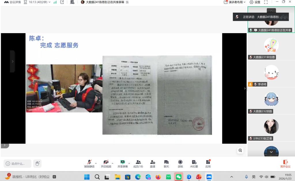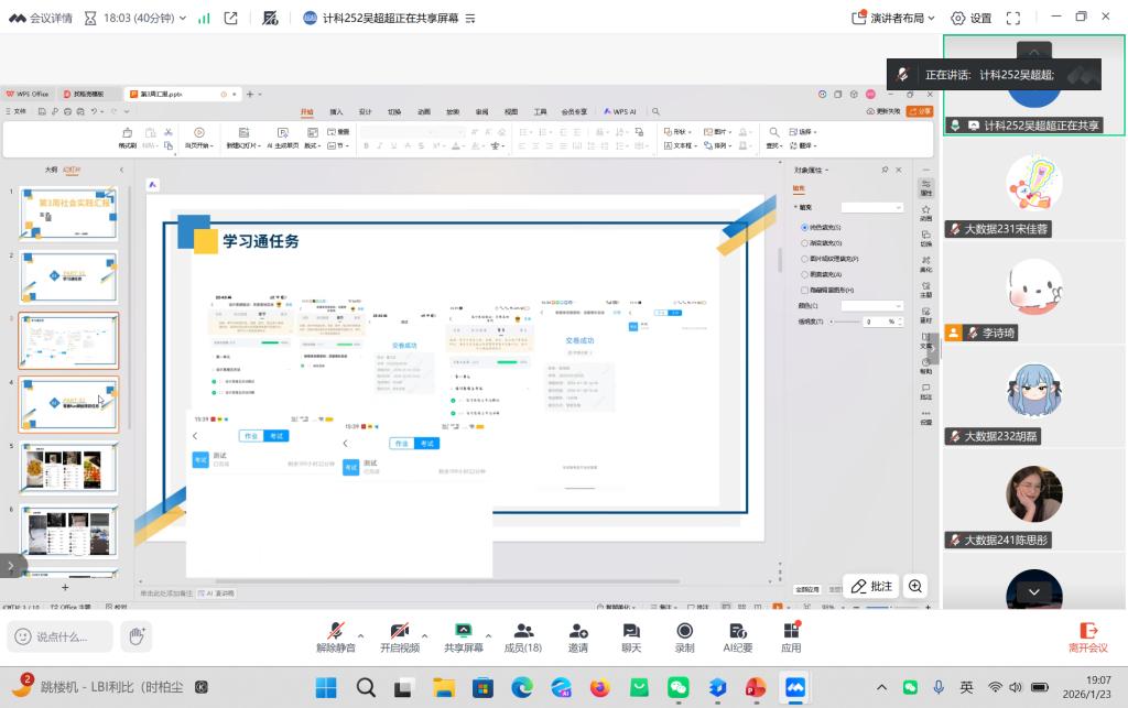 2026年1月23日晚,指导教师郭伟伟召开社会实践学期第周指导会议,会议通过腾讯会议线上召开。
