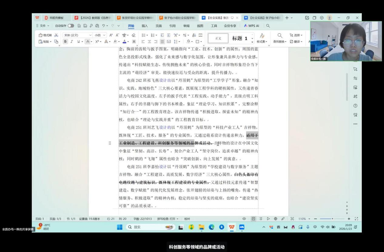 1月23日晚,电子商务专业指导教师毛一姝在线上为SHSHJ-073两个小组的八名学生召开社会实践学期中期汇报交流活动。会议由毛一姝主持,八名组员学生参加会议,中期汇报通过PPT展示的形式进行。