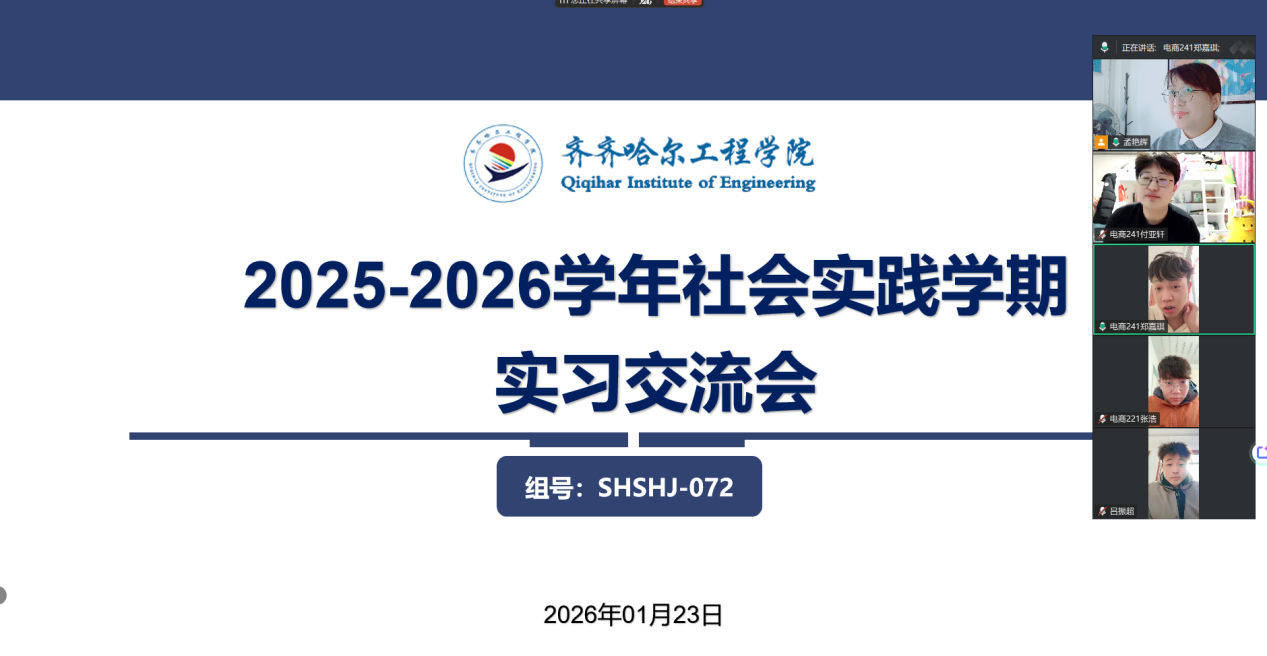 1月23日下午,SHSHJ-073组召开2025-2026学年社会实践学期第三次实习交流会。会议以腾讯会议方式召开,由生涯导师、实践指导教师孟艳辉主持,4名小组成员参会。