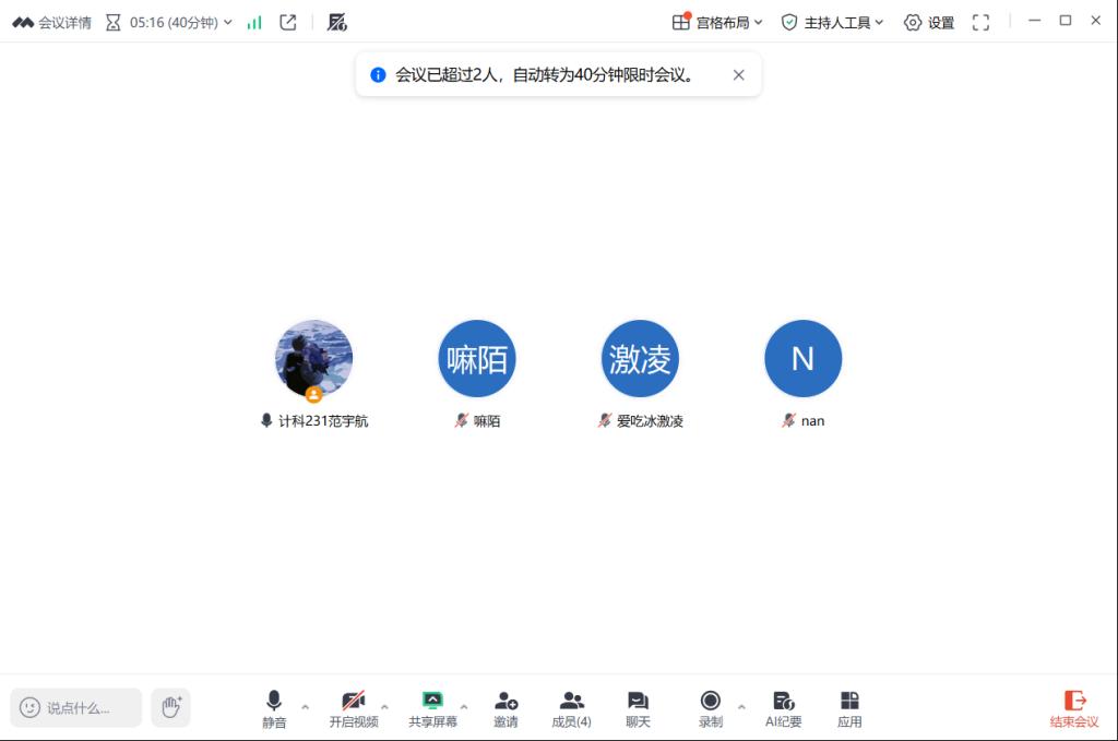 最后,范宇航对本次会议进行总结,并明确第四周实践核心重点工作:一是完善调研报告、完成吉祥物设计、推进志愿服务落地实施;二是同步启动选修内容的学习;要求全体成员聚焦任务细节,严格把控质量,确保各项任务按计划高效完成。