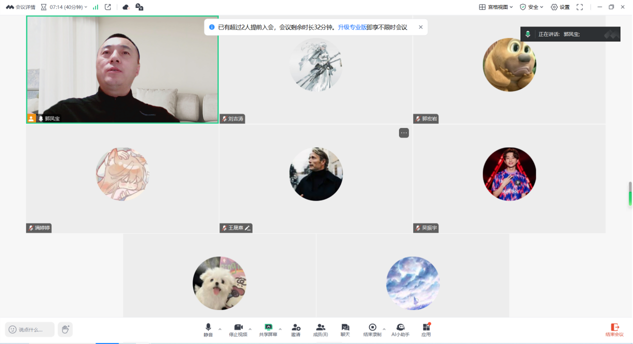 1月22日,生涯导师郭凤宝在腾讯会议平台召开社会实践学期第三周线上指导会,由郭凤宝主持,所负责的20余名实践学生全部参加。
