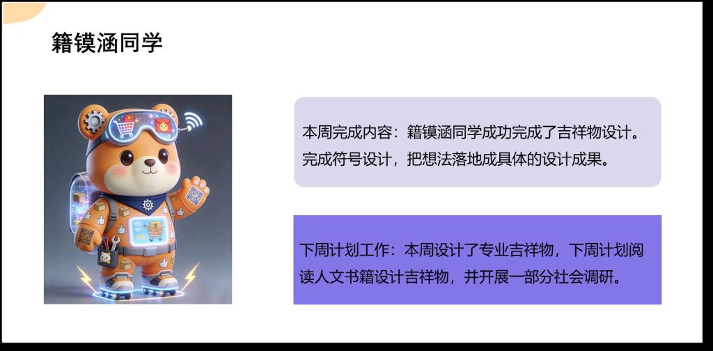 本次会议核心议程聚焦社会实践第三周任务推进情况,由各小组代表以PPT形式进行汇报。本周,各小组积极投身丰富多彩的社会实践活动,汇报过程中,代表们图文并茂、生动详实地展示了本组在志愿服务、社会调研、“青春FUN肆拍”等多个维度的实践成果,充分展现了同学们的参与热情与实干精神。通过本次分享交流,各组相互借鉴优秀经验、汲取实践智慧,为后续高效推进各项任务、提升实践质量积累了宝贵经验,也为接下来的实践工作筑牢了基础。