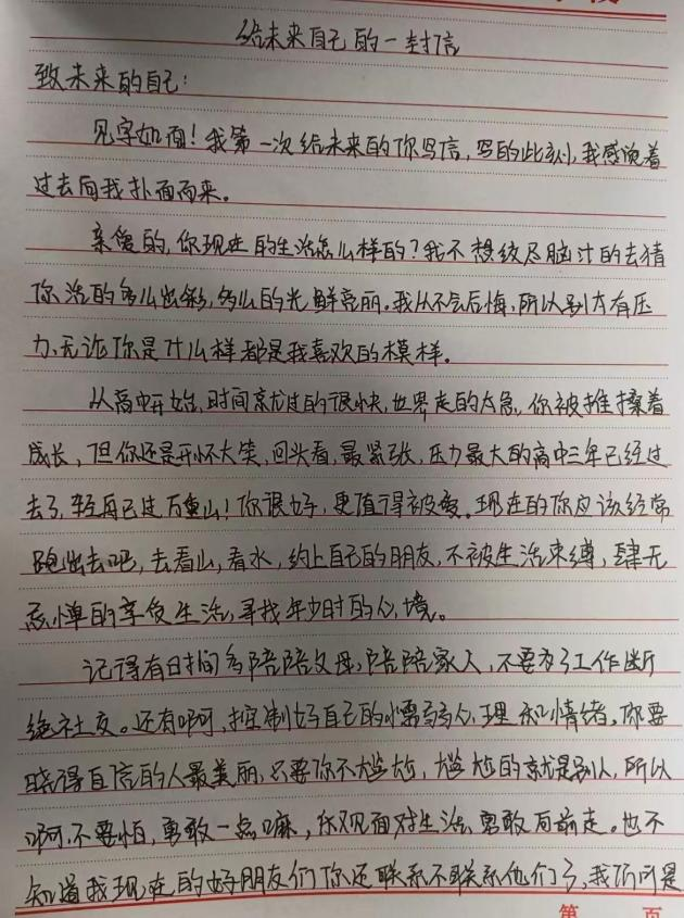 杨文汉结合第三周的实践体会与职业调研收获,对《致自己未来的信》进行全面补充与润色,明确未来学业精进与职业发展的目标蓝图,顺利完成信件全篇撰写并敲定最终版本。