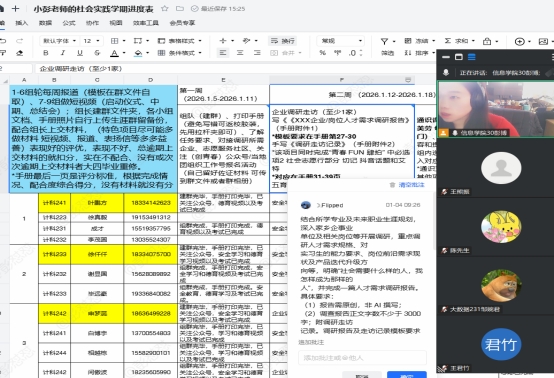 1月30日下午,计科与大数据专业通过腾讯会议召开实践工作部署会,由彭博老师主持,18名学生参与。