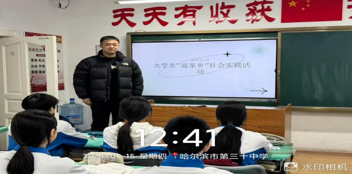 1月28日,曲鑫鹏社会实践小组的王振邦同学重返高中母校开展宣讲,重点推介学校特色育人模式与新校区建设成果,为高三学子带来升学新选择。