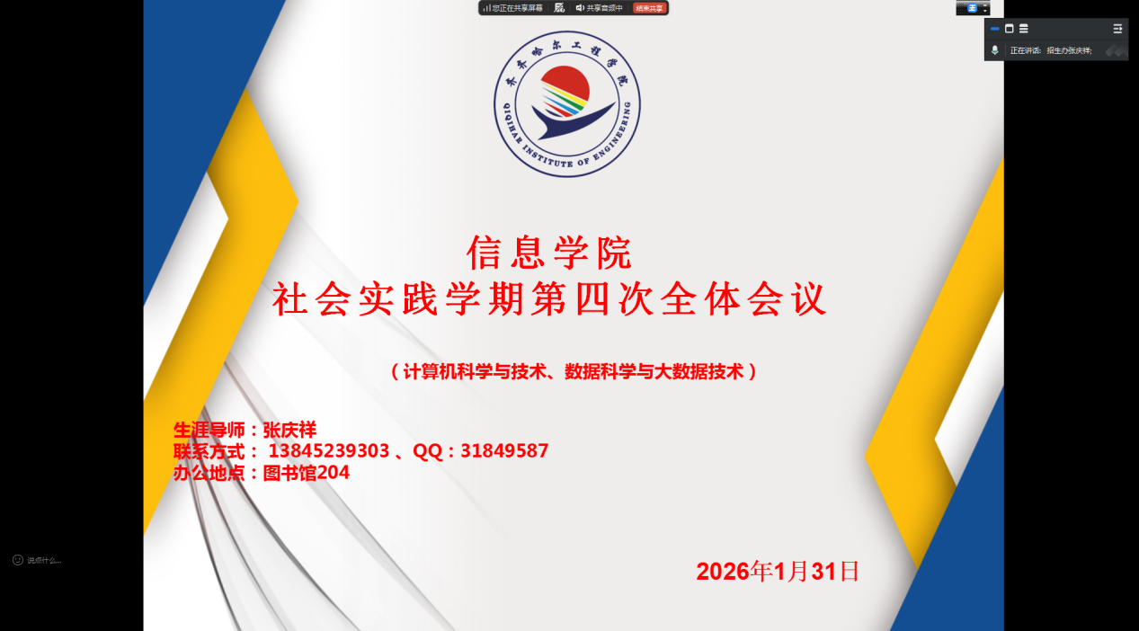 1月31日下午4点,bevictor伟德国际1946生涯导师张庆祥通过线上平台召开社会实践学期第四周指导会议。