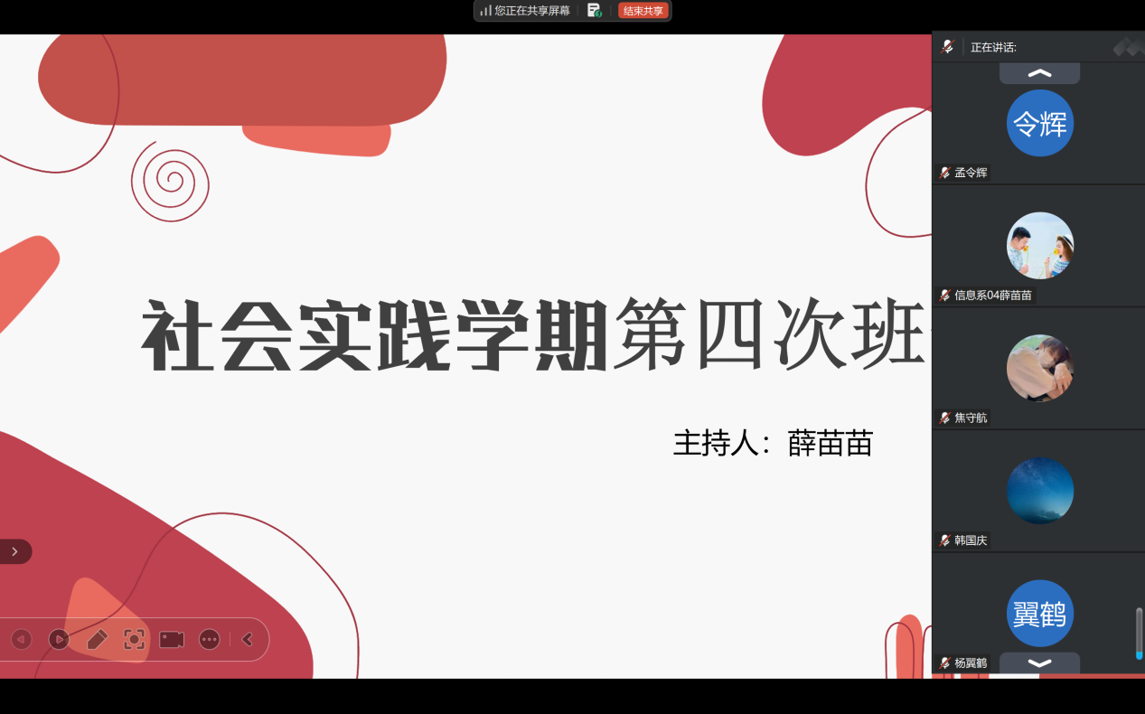 【社会实践】辅导员薛苗苗召开社会实践学期第四次会议