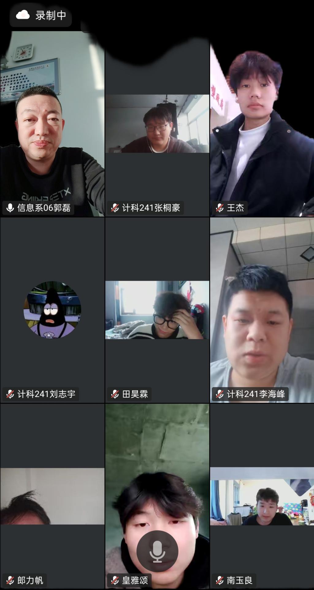 1月29日下午,为引导同学们合理规划假期时光,实现全方位成长。计科241班开展线上社会实践学期周总结会议,会议由辅导员郭磊主持,计科241班全员参加。