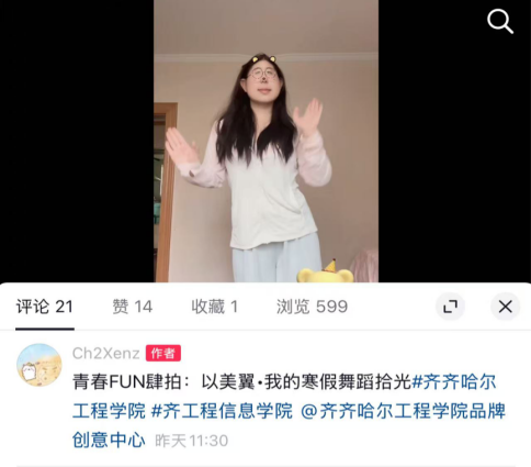 随后,小组各成员分工协作、同步推进各项核心项目,动态成效突出、亮点纷呈。在青春FUN肆拍任务中,陈卓、陈思彤结合自身特长独立开展创意创作,用镜头传递生活热爱与青春态度:组长陈卓双线并行,一方面记录卤猪蹄、家庭午餐肉制作的烟火日常,定格平凡生活中的温暖;另一方面捕捉舞蹈练习的热血瞬间,展现青春的活力与坚持;陈思彤聚焦《正是橙黄橘绿时》书籍主题,用精炼话语提炼“平凡日子亦有诗意”的核心内涵,搭配生动镜头传递阅读温度,让观者在1分钟光影里,感受书籍与生活碰撞的治愈力量,二人以不同赛道诠释青春多元魅力。在寻新“荐”面礼(回访母校)项目中,陈卓、陈思彤共同返回高中母校,通过主题分享、面对面交流等形式,向学弟学妹详细介绍伟德国际1946的办学特色、校园文化,分享大学专业学习心得,耐心解答升学选择、专业认知等疑问;同时现场播放校园文化主题视频,以鲜活直观的方式传递学校“亮剑”精神、劳动价值与青春正能量,既搭建了校际交流的坚实桥梁,也在互动中提升了自身语言表达与逻辑梳理能力。在志愿服务方面,郭汝佳立足专业所长,前往萍乡市太坪村村委会开展公益服务,协助村民整理信息数据、优化数据统计表格,为村委会便民服务工作提供精准技术支持,在贴心服务中践行社会责任,深化了对专业价值与社会需求的认知,锤炼了耐心细致的工作作风与沟通协作能力。