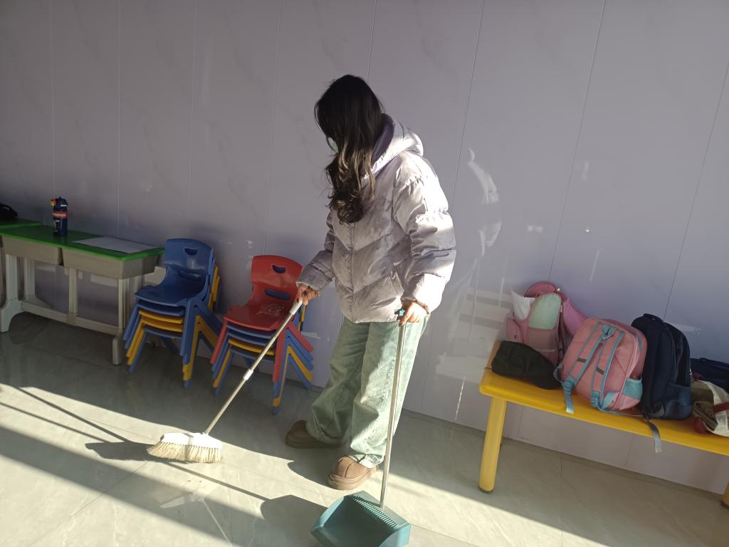 随后,小组各成员各司其职、高效协作,有序推进各项核心任务,动态成效显著。组长徐雯雯聚焦志愿服务,先后两次走进幼儿园开展实践:第一次耐心辅导孩子们功课,用生动有趣的互动方式激发孩子们的学习兴趣;第二次主动拿起清洁工具,细致清扫教室与活动区域,全方位擦拭桌椅、整理杂物,为孩子们打造整洁明亮的学习生活环境,用实际行动传递温暖,践行志愿精神。组员安博闻投身“青春FUN肆拍”短视频创作活动,以一道家常菜的制作为核心主题,精心构思镜头画面,用镜头完整记录从调汁、备料到前期预处理的全过程,认真完成素材采集与初步剪辑,确保视频内容贴合主题要求。组员赵芷曼专注参与《舞蹈实践》课程学习,认真打磨女生舞蹈片段的动作细节,顺利完成舞蹈学习与视频拍摄任务,既展现了当代女大学生在艺术实践中的活力与风采,也让舞蹈的美感在镜头前得到生动传递。