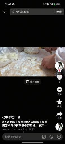 王羽彤到街边饺子摊参与实践,协助备料、擀皮、打包,记录摊主制作流程与待客细节,观察烟火气里的经营日常。既体会到手工劳作的辛苦,也懂得诚信经营与暖心服务的重要,更感受了市井烟火的温情,收获了课本外的成长与感悟。