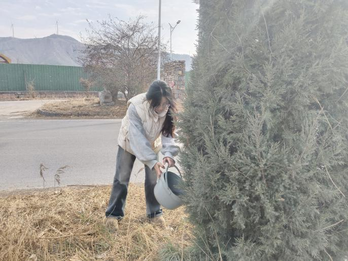 张路苹完成青春FUN肆拍社会志愿行,拍摄视频上传在短视频平台。此次公益服务是对河南省新乡市辉县市南村镇马路边的树木进行浇灌,在浇灌过程中,不仅有效缓解了树木缺水问题,助力树木健康生长,还让她在实践中深化了环保意识,体会到“植绿护绿”的责任与意义。