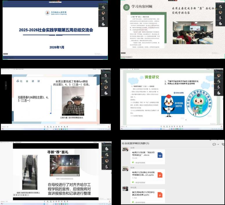 2026年2月6日,指导教师杜飞通过腾讯会议线上召开社会实践学期第五周指导会,实践小组全员参与。本次会议重点复盘各小组本周实践成果、校准实践方向、强化团队协作,并部署下周核心任务。