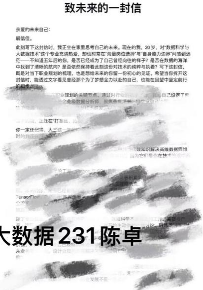 在团队协作层面,三名同学依托线上平台保持密切沟通、高效联动,定期召开线上交流会,分享个人实践进展、心得体会与遇到的难题。无论是“致未来的信”的思路碰撞、文字打磨,还是“青春FUN肆拍”的创意构思、拍摄技巧交流,或是“回访母校”的流程梳理、经验总结,大家都坦诚分享、相互启发,在互动交流中补齐自身短板、优化实践成果,让个人实践成果在团队交流中得到进一步升华,真正实现了“个人成长、团队共进”。