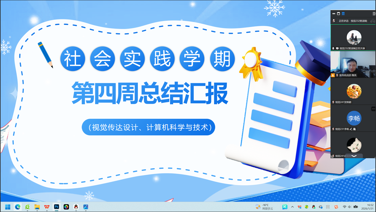 为扎实推进社会实践工作,及时梳理问题、明确方向,1月31日下午,党委宣传统战部生涯导师隋亮通过腾讯会议,为其指导的7名社会实践学生召开第四周阶段性总结会,会议由隋亮老师主持,全体学生参会。