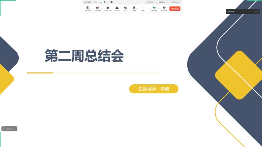 1月16日下午,生涯导师李晨在线上召开第二周社会实践学期总结会,共17名同学参加。