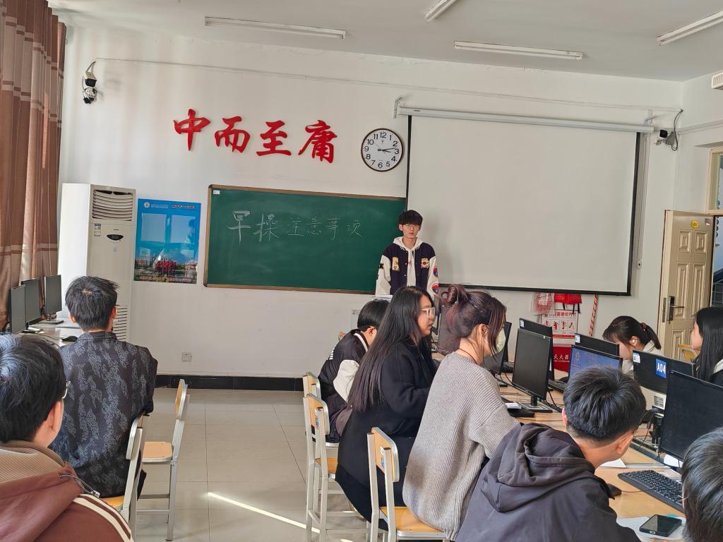 4月7日下午,视觉231班在一号教学楼的3207教室召开以“早操注意事项”为主题的班会,本次班会由视觉231班班长裴国丰同学主持,共有32名同学参与此次班会。
