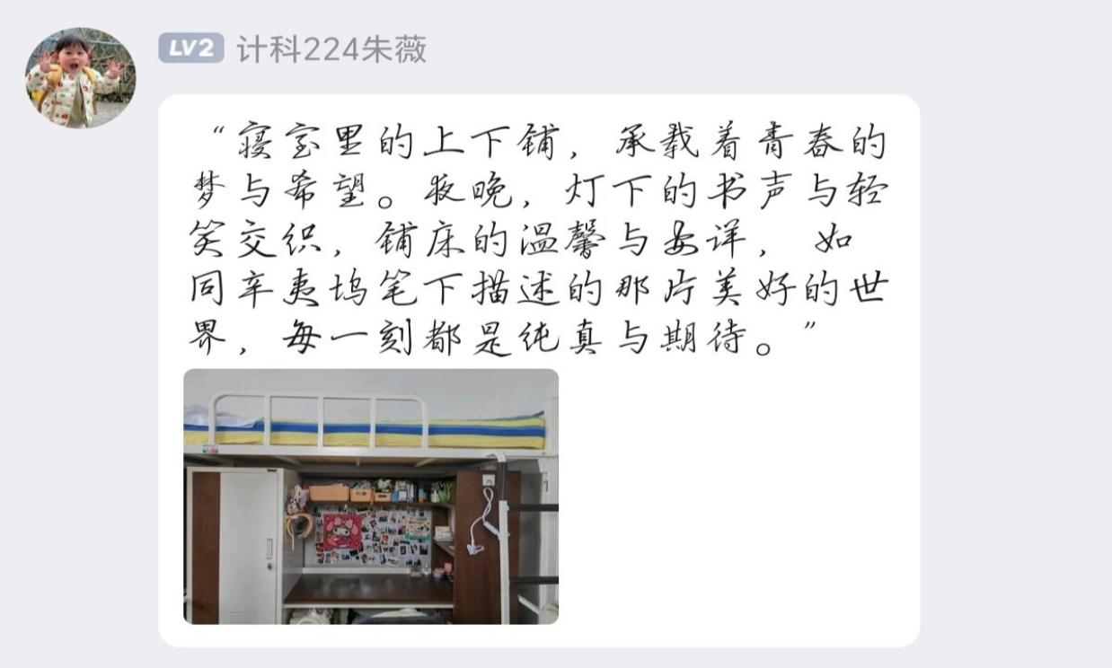 3月29日下午,信息工程系学生会学习部在线上举办了“点亮文化,展舍风采”寝室活动。本次活动旨在通过学生寝室的文明创建活动,引导广大同学营造积极健康、乐观向上的学习生活氛围,展现大学生的良好精神风貌。