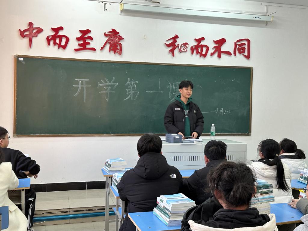3月3日下午,计科232班在一号教学区1#1311多媒体教室开展“开学第一课”主题班会,由辅导员杨佳佳主持,班长王中旭辅持,计科232班52人全员参加。