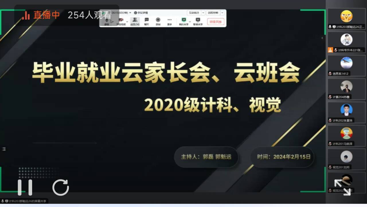 2024年2月15日19时,计算机科学与技术专业和视觉传达设计专业召开2020级毕业生毕业就业云家长会、云班会。