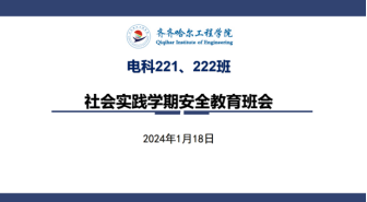 2024年1月18日下午,电科22级于线上开展“社会实践学期安全教育”主题教育班会,此次会议由辅导员刘铭炜主持,电科221和电科222班去全员参加。