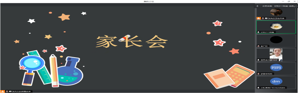 2023年12月20日,23级计科专升本全体成员在腾讯会议开展了线上家长会,本次会议由辅导员薛苗苗,以及两个班级的班长张卜生和全广柱主持,会议共有83位家长新生参加