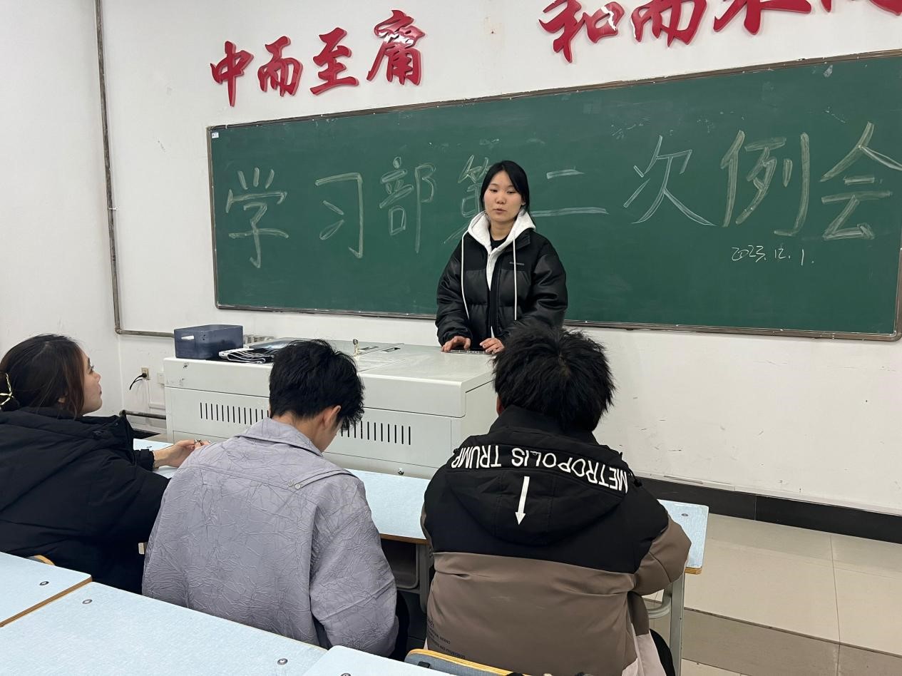 12月1日晚,信息工程系学生会学习部部长徐明金在一教A区1315教室召开学习部第二次例会,由信息工程系学生会学习部部长徐明金主持,参会人员有信息工程系学生会学习部部员。