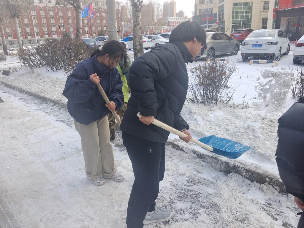 本次活动的目的是让同学们多参加一些有意义的活动,使校园生活更加丰富多彩,同时也增加了同学之间的交流和交往。冬日里,皑皑白雪将齐齐哈尔装点成了白色的世界。因此,青工委员王依涵组织扫雪铲冰行动,走进社区街道开始进行扫雪活动。活动首先,王同学把大家分成两部分,一部分用雪橇清理广场上的积雪,而另一部分用垃圾铲刮去地面上扫不起来的冰碴子。由于雪积得比较厚,很难清理,大家干的都很认真,经过同学们三个小时的不懈努力,路上的积雪终于清理干净。同学们干劲十足的背景吸引了许多路人赞许的目光,因此,应该让环保意识永远活在我们心中,我们应该无时无刻,无时无地的发扬我们的环保精神,争做一个环保先锋! 通过这次志愿者活动,同学们不仅可以学习发扬吃苦耐劳,为社会服务的精神,还帮助了身边的环境做出了贡献。
