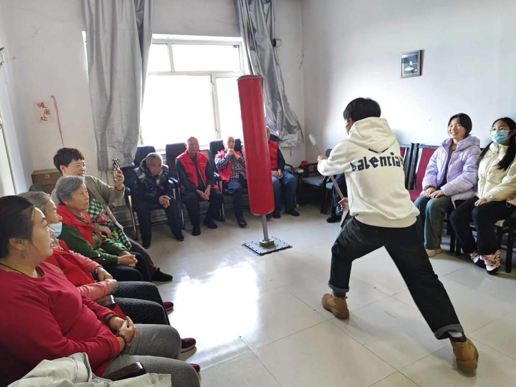 此次活动旨在给养老公寓的老年人送关怀送温暖,增加养老生活的乐趣。在与负责人进行交流过后,同学们了解了老年公寓的大致情况以及与老人相处时的注意事项。随后,同学们跟着负责人来到了五楼活动室,进行表演准备。同学们分别在二楼三楼迎接护送老人,据悉,大部分老人已经年过古稀。然后,同学们分别为老人展示了刺杀操、歌曲、舞蹈、,并且与老人们一起扭秧歌。最后,同学们分散开来陪老人一起打牌、下象棋。