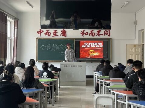 班会期间,苏鑫首先组织同学们观看有关国家安全教育的宣传短片,初步了解安全法的重要性,随后,苏鑫向班级同学介绍了2023年全民国家安全教育日的活动主题是“贯彻总体国家安全观,增强全民国家安全意识和素养,夯实以新安全格局保障新发展格局的社会基础”。之后,苏鑫围绕“宣传全民国家安全教育日”、“树立国家安全意识”、“保守国家秘密法”、“安全知识普及”等内容,结合校园安全、人身安全等规章制度进行拓展延伸,通过讲座、发言交流、视频观看等形式开展宣传、教育、学习。通过对“全民国家安全教育日”的介绍和有关违反国家安全法律案例的讲解,同学们意识到,国家安全教育是每个公民的“必修课”,是保障国家政治、经济、文化稳定发展不容忽视、不可或缺的重要基础和条件,国家安全就在身边,每个人都是国家安全的一道防线。最后,同学们在龙江先锋公众号中进行答题,进一步增强同学们的国家安全意识和素养。