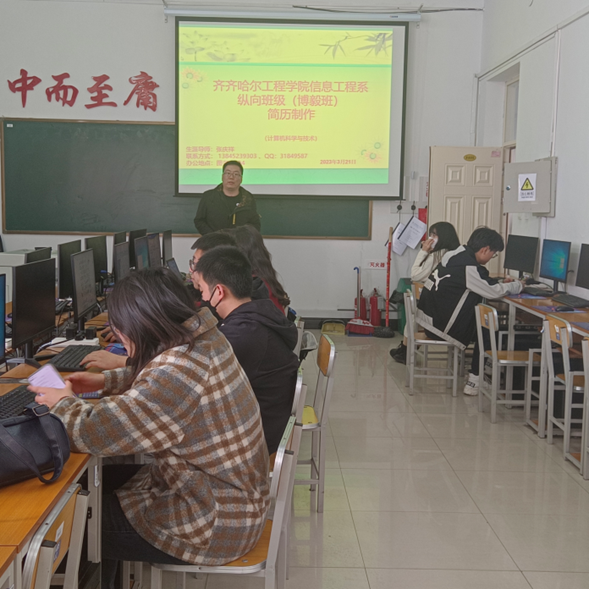 3月21日中午,生涯导师张庆祥在1号教学区3405教室召开纵向班级大三简历制作指导会,会议由张庆祥老师主持,共8名同学参加。