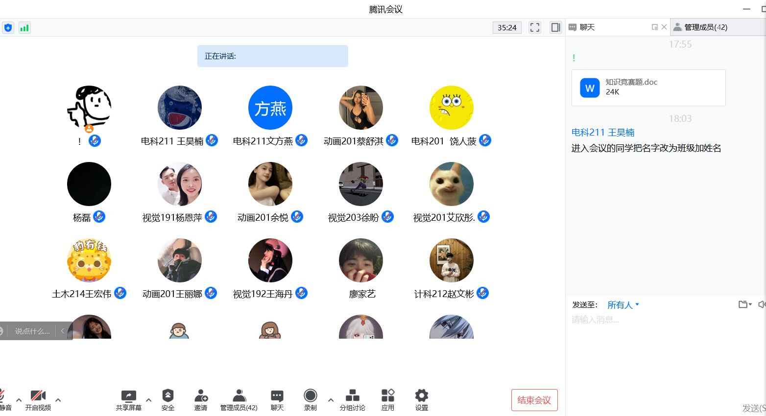 3月24日晚,起球手工社团在腾讯会议开展“手工知识竞赛”活动,本次活动由社团副社长冉莉涵主持,共42名社团成员参加。