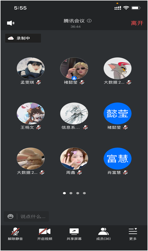 2月22日晚,大数据212班在腾讯会议上召开线上班干述职会议,会议由兰天月老师主持,大数据212班共35人参加。