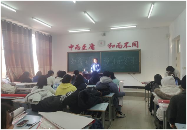 首先,佟老师给同学们讲解了为什么要重视课前预习,课前花点时间预习,对老师要讲的内容有个大致的了解,上课时就不至于太过迷茫。她带领着同学们就如何进行课前预习进行讨论,同学们结合自己的学习经历提出许多方法,例如上网站查找相关资料、在教辅app看预习视频、认真查阅教材、提前预习老师下发的ppt等等。其次,佟老师强调了期末备考要尽早,从现在做起,积极着手准备复习,端正学习态度,打起十二分的精神,保证复习的全面性和细节化。老师还提醒同学们无论是生活还是学习中,遇到问题时要多与老师同学沟通交流,不要独自一人埋头苦思,降低学习效率,事倍功半。最后,佟老师向同学们提几点建议,一是养成良好的学习和生活习惯,提高学习质量。课前积极预习,课上听讲注意力集中,课后及时复习,敢于质疑,敢于提问。二是有效复习知识,查漏洞补不足。全面梳理本学期所学的知识点,结合平时作业找到自己知识上的薄弱环节,为自己制定一个复习计划,明确复习的重点是什么。三是劳逸结合,有效用脑。“一张一驰是文武之道”,要想提高学习成绩,还要注意劳逸结合,有效用脑。
