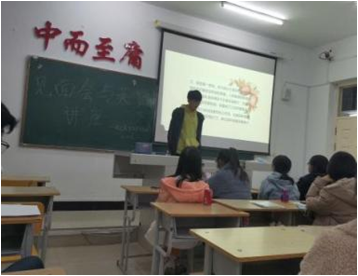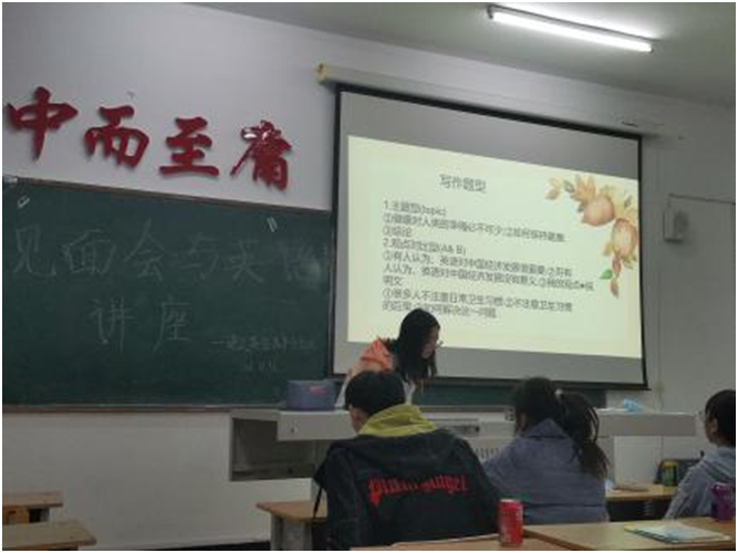 分享会旨在让每一位同学都可以充分了解英语四级的相关知识。讲座中,三位学长向同学们们讲述了英语四级的一些基本情况与答题技巧,将自己的考试的经验以及技巧分享给每一位在场的同学。同学们认真听讲,并时而报以热烈掌声。