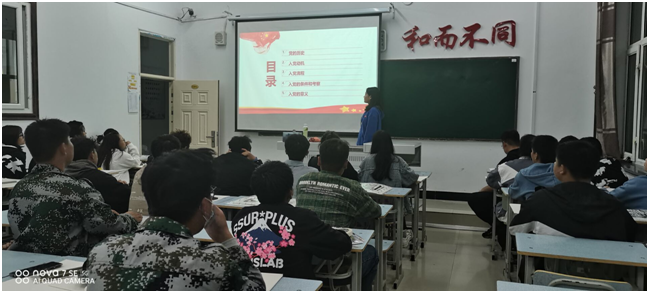 本次活动主要是为了提高新生对党员发展相关知识的了解,引导新生积极向党组织靠拢,首先,高诗词学长对自己的入党流程进行了简单阐述,同学们对此有了一定的了解。接着学长围绕“党的历史及入党流程”和“入党申请书写作”两部分对全体新生进行了详细的解读和培训,让每一位新生对入党流程和入党申请书的写作有了深入的了解。最后,高诗词学姐指出:作为大学生应该紧跟时代步伐,紧随时代要求,有新时代特征,有新时代气象,中国共产党是与时俱进的党,是伟大的党,作为新时代大学生应该积极以实际行动加入到中国共产党。