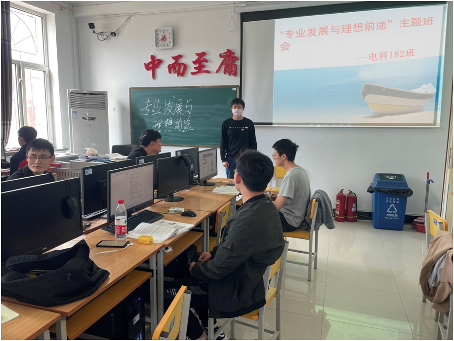 5月18日,电科182班在一教3307室召开“行业发展与理想前途”主题班会,班会由兼职班主任李阁老师主持,全班学生参加了此次班会。