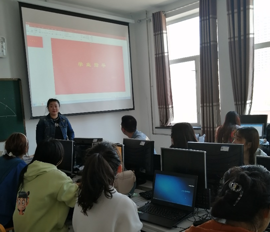 4月29日上午,信息工程系兼职班主任于悦,在1#3308室对视觉182班学生进行学业指导。