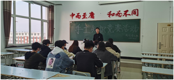 活动开始前,由社团干部通过微信、QQ等通讯软件进行宣传,学生们积极踊跃报名。当日活动开始,由社团干部冉莉涵发放知识竞赛的试题,试题中涵盖了大量有关手工的知识,有关中国结、剪纸、刺绣、布艺、陶艺、灯彩、风筝、皮影等等中华传统手工艺文化。随后,大家阅读完试题后开始认真答题,答题完毕后,由社团干部收齐,现场公布答案,进行评分,整个过程公平公开公正。通过评分,动画201班冉莉涵获得第一名,视觉201班艾欣彤获得第二名,电科201班杨磊和视觉203班杜青青获得第三名。
