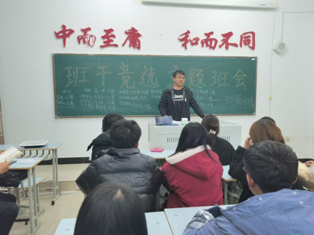 2020年11月19日,动画201班于1#1413室召开班干竞选主题班会,本次活动由任鹏飞老师主持,动画201班全体同学和学长参加。