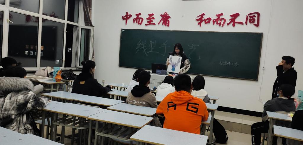 当星星还在夜幕中玩耍时,黎明已悄然而至;当乌云还在飘飘然时,阳光已经洒下黄金;当我们还在无止境地嬉笑玩闹时,年龄已悄然增长。就这样还没来得及和高中说再见,我们已经踏上了青春的列车。我们一群“不知愁滋味”的懵懵懂懂的少年,开始了我们的青春。不知倦怠地属于我们自己的密码在时空中写下故事,在乐谱中留下音符。大学生活开始了,起球手工社在经历了一系列的的准备,我们在一教1406举办了线型手工艺活动,同学们在活动过程中,看到了同学们的笑声,活动开心才最重要。不仅提高了动手能力,还提高学生们的艺术知识素养。