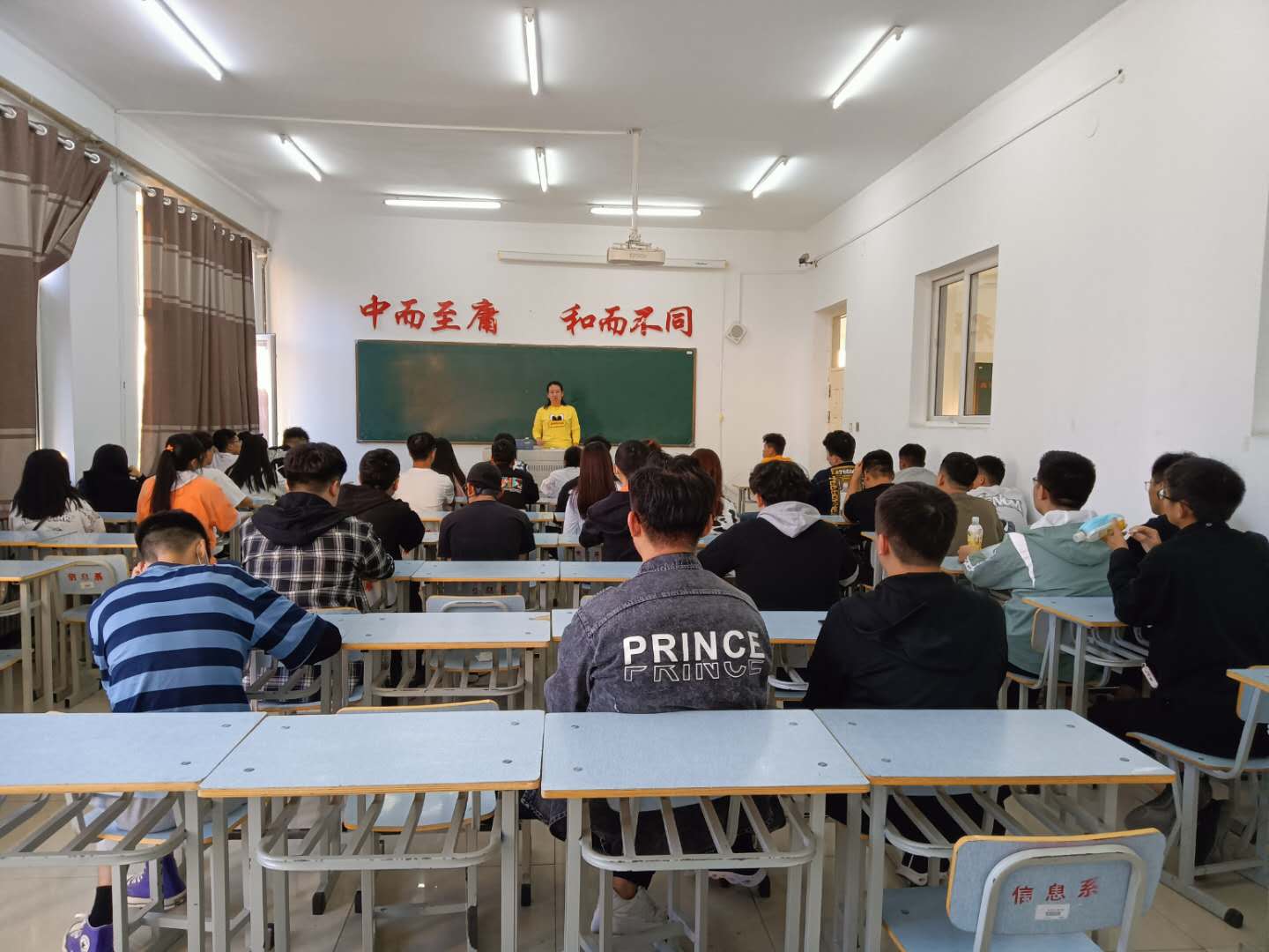 这次的班会是疫情复学后的第一次班会,在这次的班会上雷蕾老师主要强调了开学后要及时收心,做好自己的本职工作--学习,以及自身安全问题,校内带好口罩,不外出,做好防疫工作,同时在宿舍里,要做好宿舍内的卫生,人走电断,注意安全。