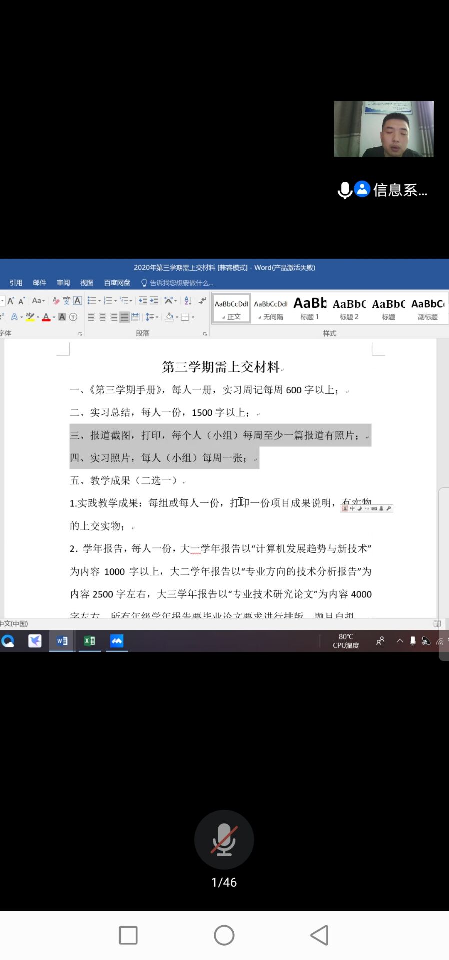 此次班会吕双庆老师主要讲述了第三学期实习的问题。首先吕双庆老师对此次实习做了动员讲话,强调了全系对本次实习的重视;随后他强调实习一定要保障自身安全,疫情严重的地方,不要随意前往,以及实习单位的选择一定要慎重,要尽量选择和自己专业有关的、熟人介绍的地方去实习,以防万一;最后他向同学们简单介绍了第三学期手册的内容,并对同学们提出的疑问进行解答。此次会议圆满结束。
