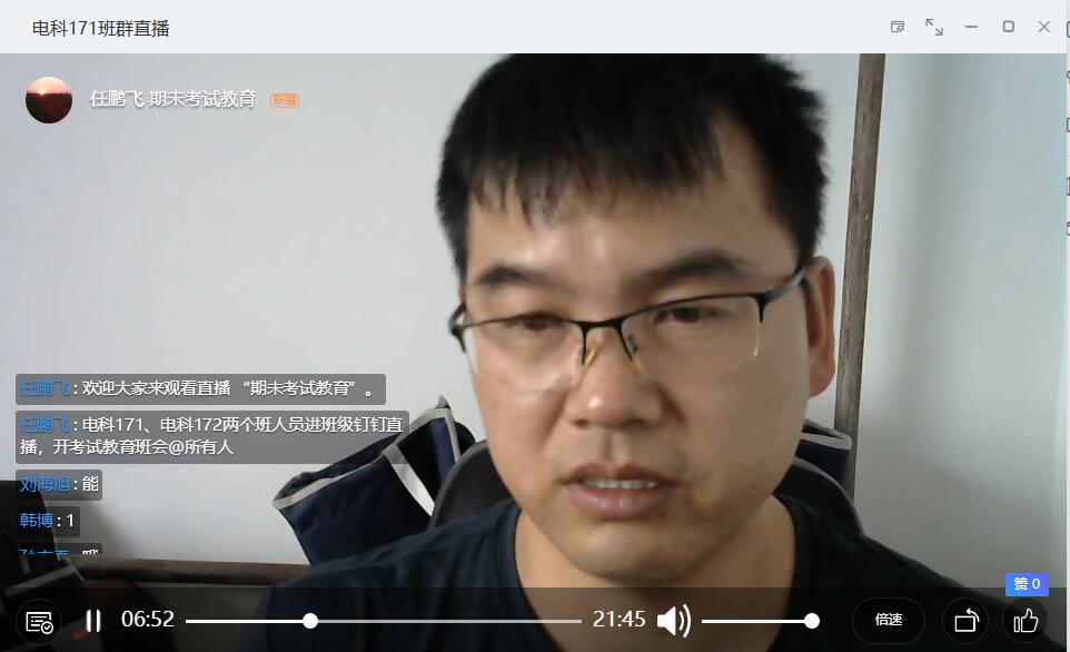 人无信而不立,人而无信,不知其可也,为了让同学们更顺利通过期末考试任鹏飞老师于2020年7月3日在钉钉群为电科17级开展“期末考试教育”主题班会。