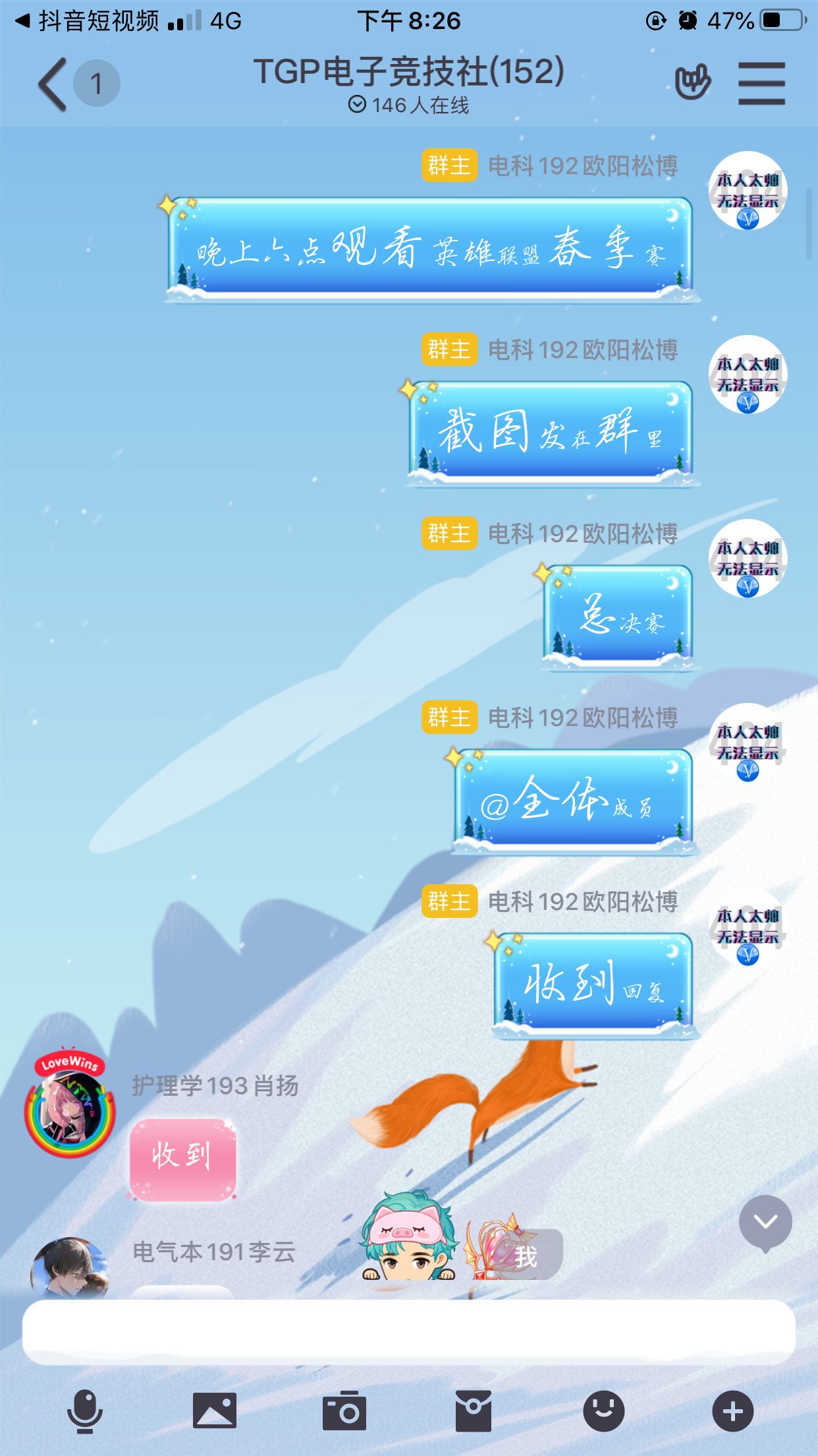 为了缓解疫情紧张气氛,給在家网课同学们放松身心TGP电子竞技社于2020年6月13日于QQ群举行观看英雄联盟春季赛活动,此次活动由社长电科192欧阳松博主持。
