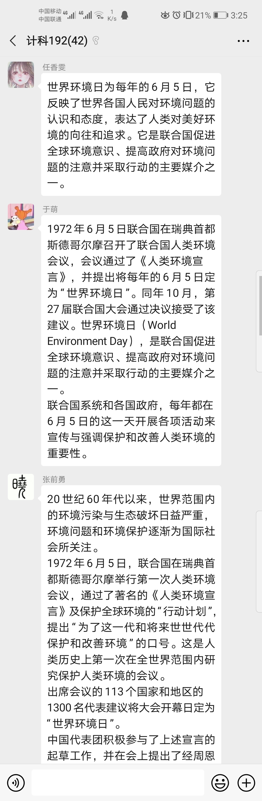 2020年6月5日,计科192班于微信平台开展“世界环境日日”主题团活,此次团活由组织委员李嘉新主持,计科192班全体学生共同参与。