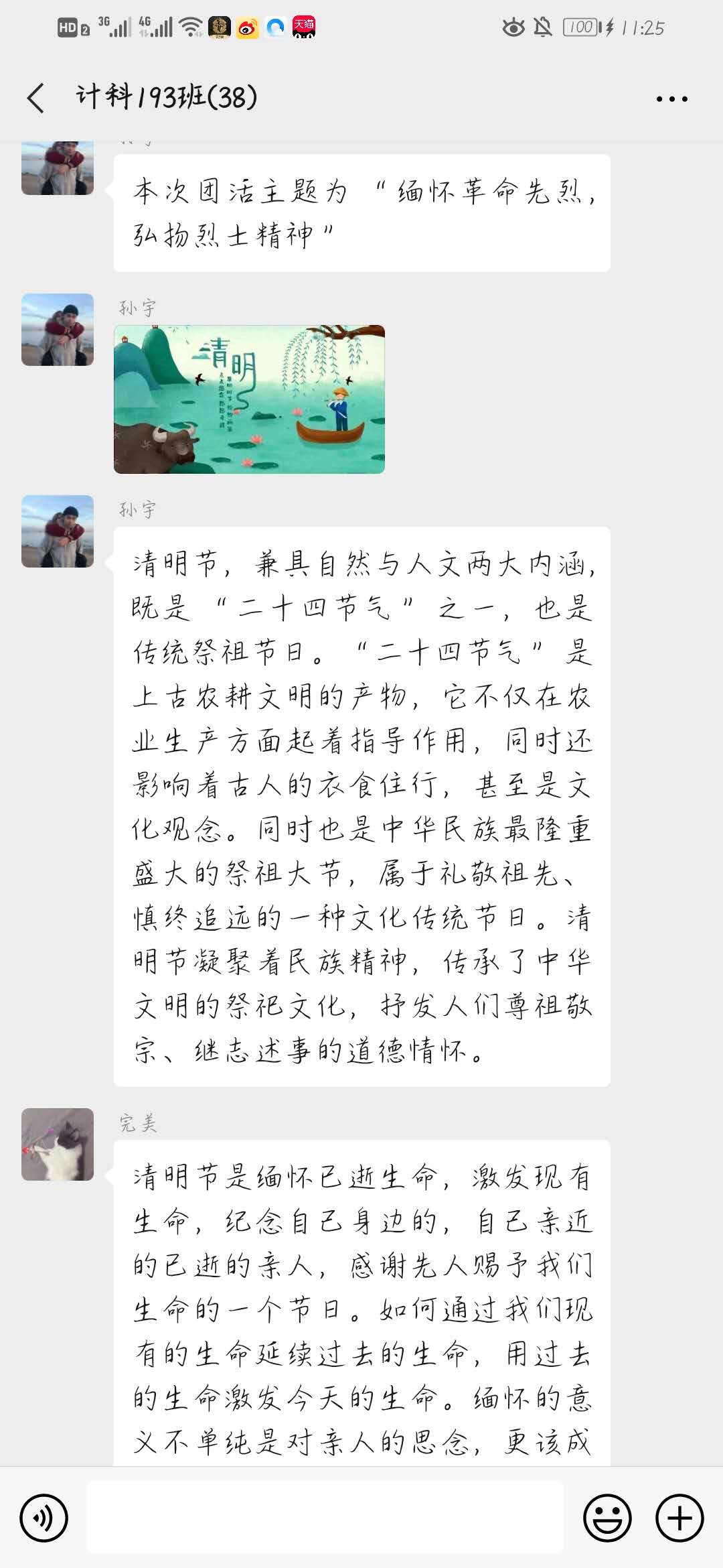 2020年3月31日,计科193班开展线上祭奠主题活动,此次活动由团支书孙宇主持,其他同学参加。